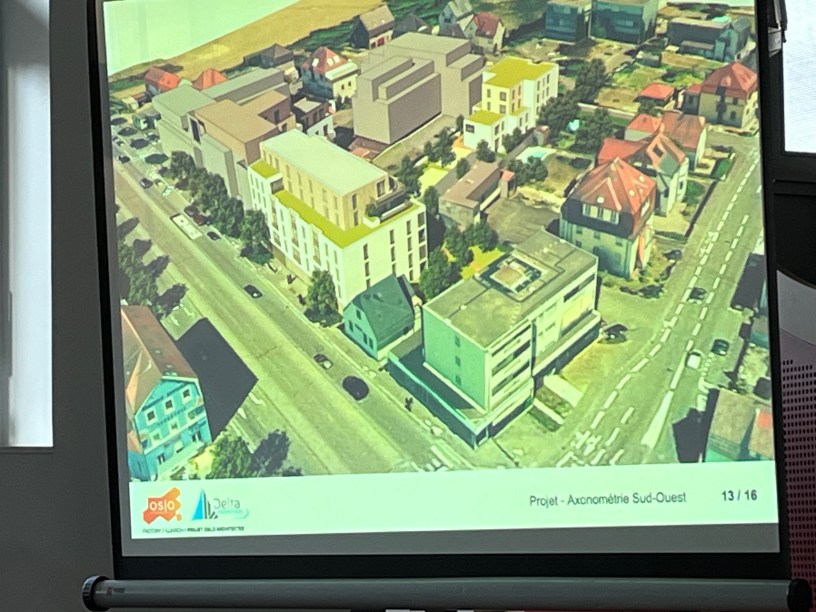 Mme Dambach, présidente déléguée de l’Eurométropole de Strasbourg (EMS) en charge, notamment, de la « planification urbaine et nature », était accompagnée de Guillaume Simon, chef du service « Aménagement du territoire et projets urbains », et d’Enzo Dauphinot, conseiller urbanisme et habitat de la maire de Strasbourg et de la présidente de l’Eurométropole de Strasbourg.